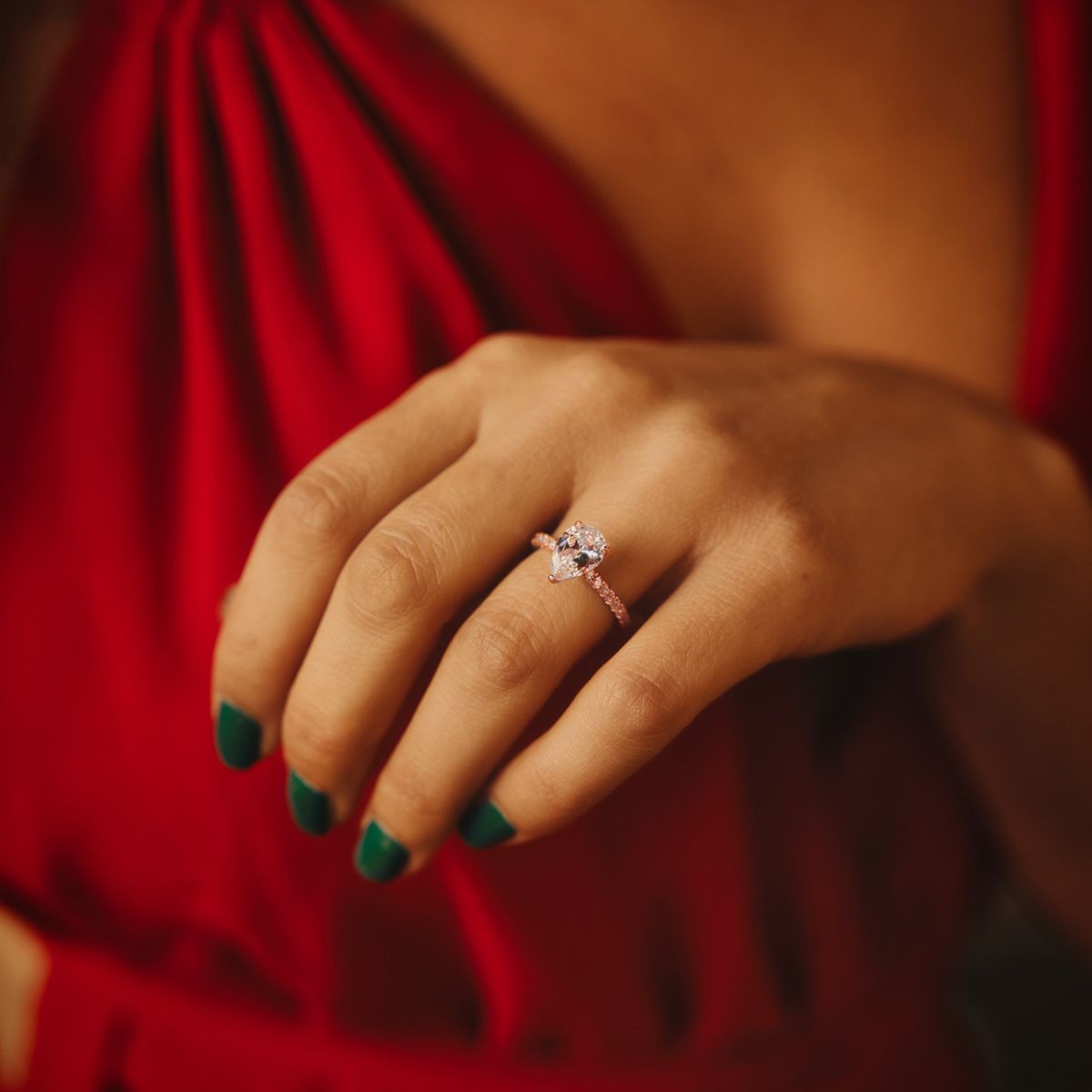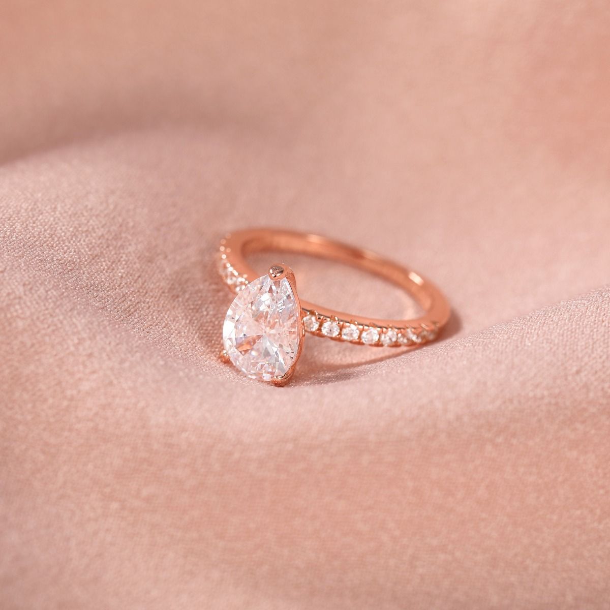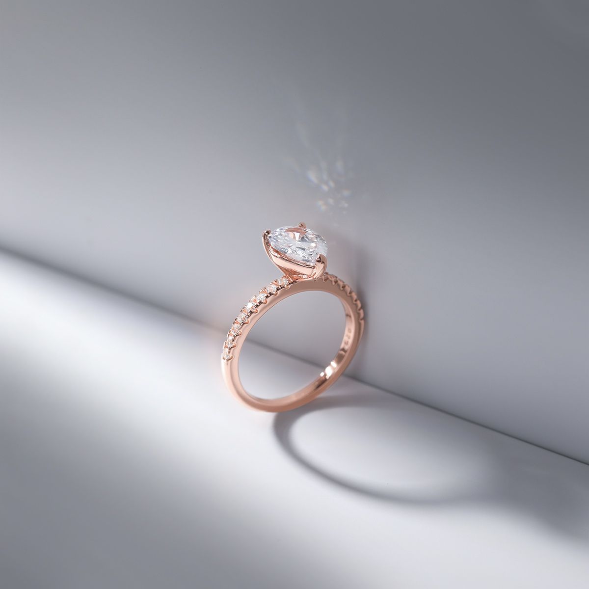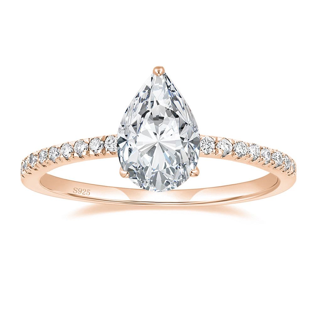 Shop wholesale 925 Sterling Silver Rings with a touch of rose gold. Adorn yourself with this stunning 2Ct pear cut cubic zirconia CZ teardrop ring for your special day. Perfect for women's engagement bands, add a touch of glamour to your look with this beautiful piece of jewelry. Order now for an affordable price.'