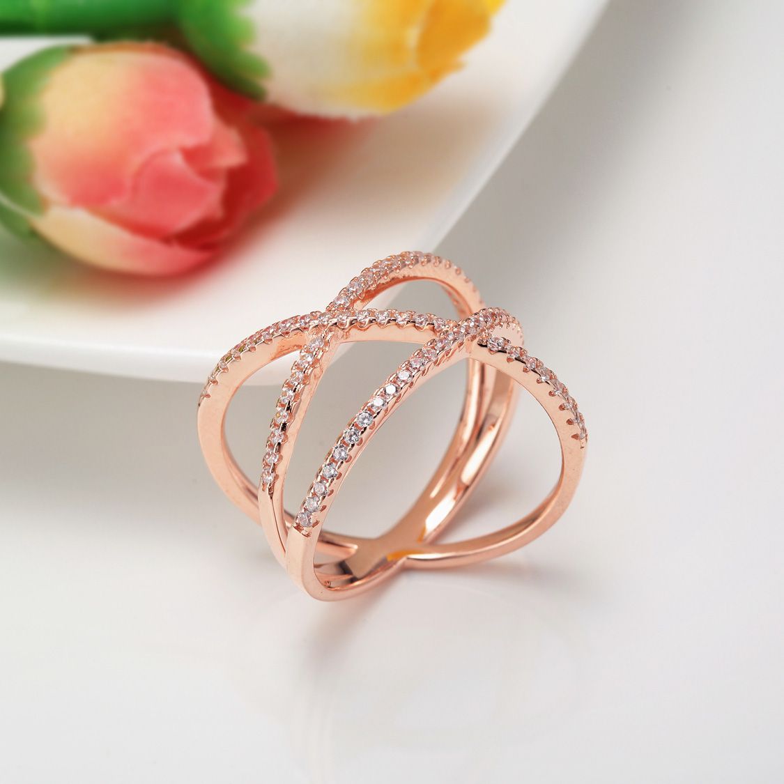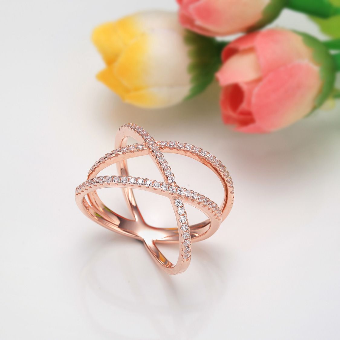 Shop the latest collection of Rose Gold 925 Sterling Silver Rings for Women at wholesale prices. This beautiful X Shape Cross design ring is crafted from high-quality 925 sterling silver and adorned with sparkling cubic zircon stones. Ideal for weddings and special occasions, this stunning ring will make a statement with its unique and stylish design. Order yours today and add a touch of elegance to your jewelry collection.