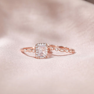 Rose Gold Plated 2ct 925 Sterling Silver Bridal Ring Sets Emerald Cut CZ Women Vintage Engagement Bands