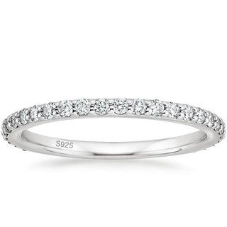 Trendy 2mm 925 Sterling Silver Ring Women Cubic Zirconia Stackable Eternity Ring