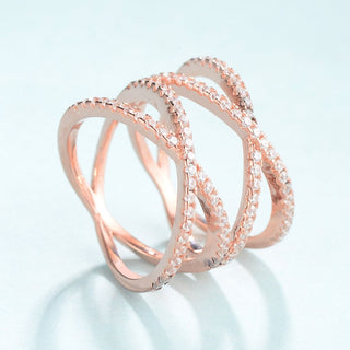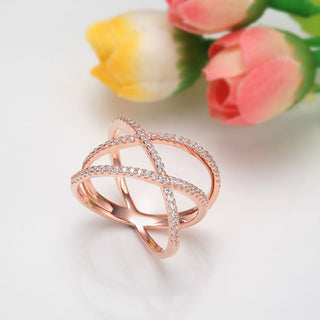 Rose Gold 925 Sterling Silver Ring Women Double X Shape Cross Design Cubic Zircon Wedding Bands