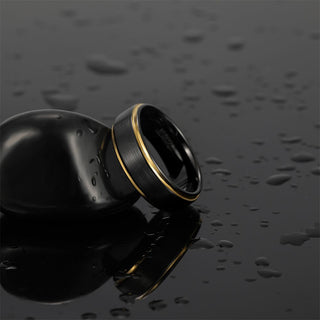 8mm Black Brushed Tungsten Rings 18k Gold Plated Men's Wedding Bands