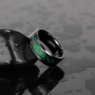8mm Black Tungsten Carbide Rings Green Celtic Dragon Inlay Men Women Wedding Bands