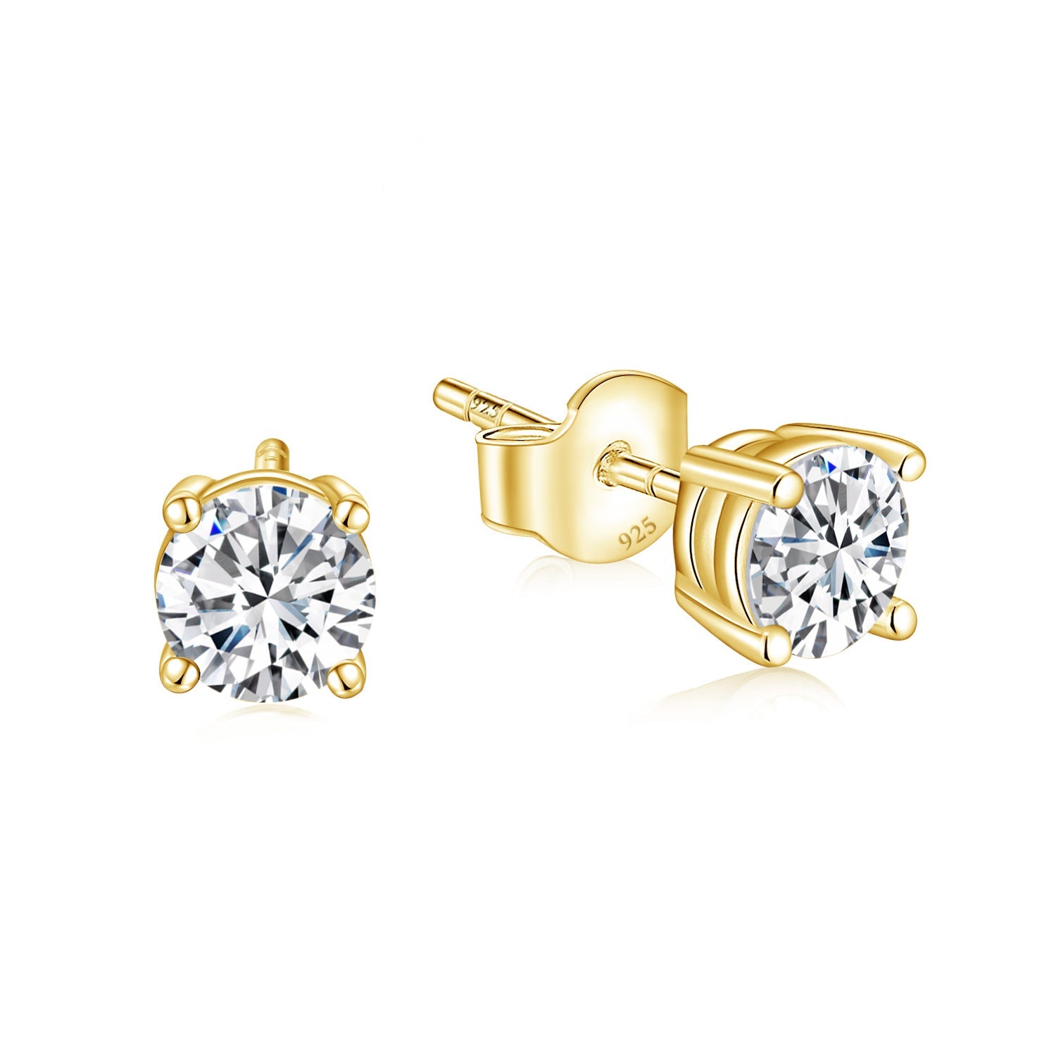 Hypoallergenic 0.5ct Moissanite Round Cut Stud Earrings 14k Gold Plated 925 Sterling Silver Earrings For Women
